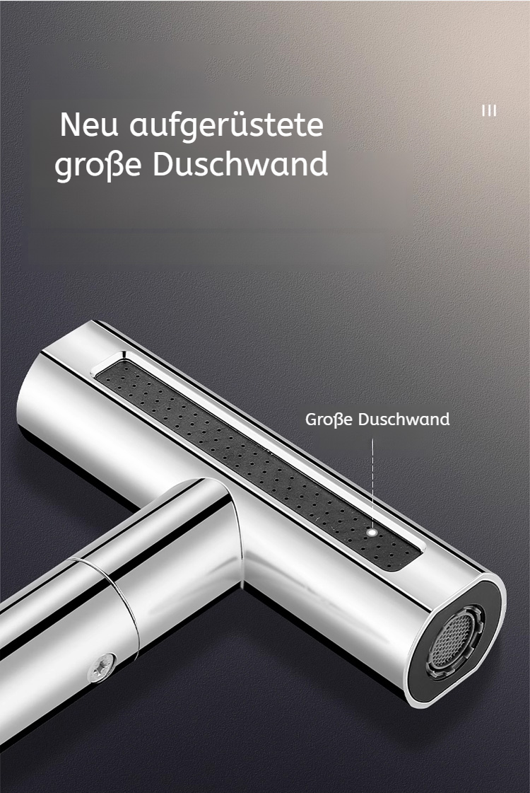 Multifunktionaler drehbarer Wasserhahn mit Wasserfall- und Regendusche-Effekt